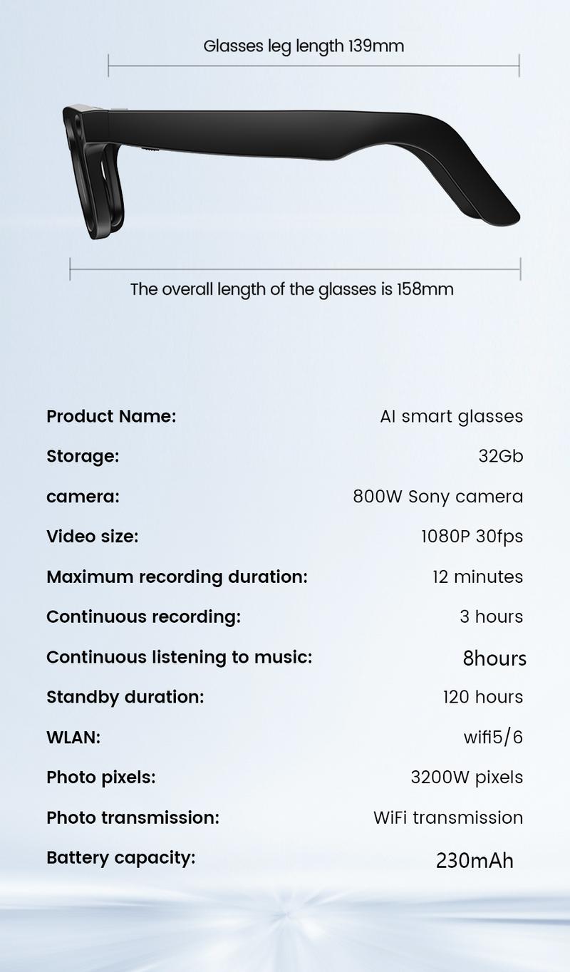 Stay connected with the latest in smart glasses technology. The touch-control feature adds convenience, making it easy to interact with your devices. Ideal for modern users seeking advanced features in a compact package.