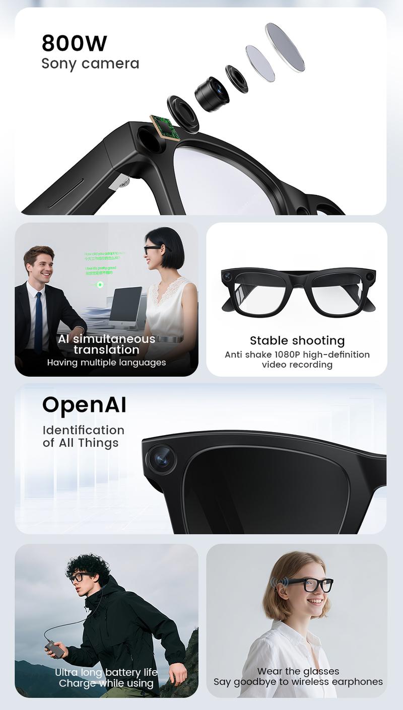 Evomi smart glasses are equipped with a 800W HD high-definition camera for a clear video experience. Experience Bluetooth voice communication for uninterrupted interaction. Stay connected easily with the latest smart glasses technology. Touch function improves ease of use and makes device interaction simpler and more convenient. Perfect for modern users who value advanced functions in a compact design.